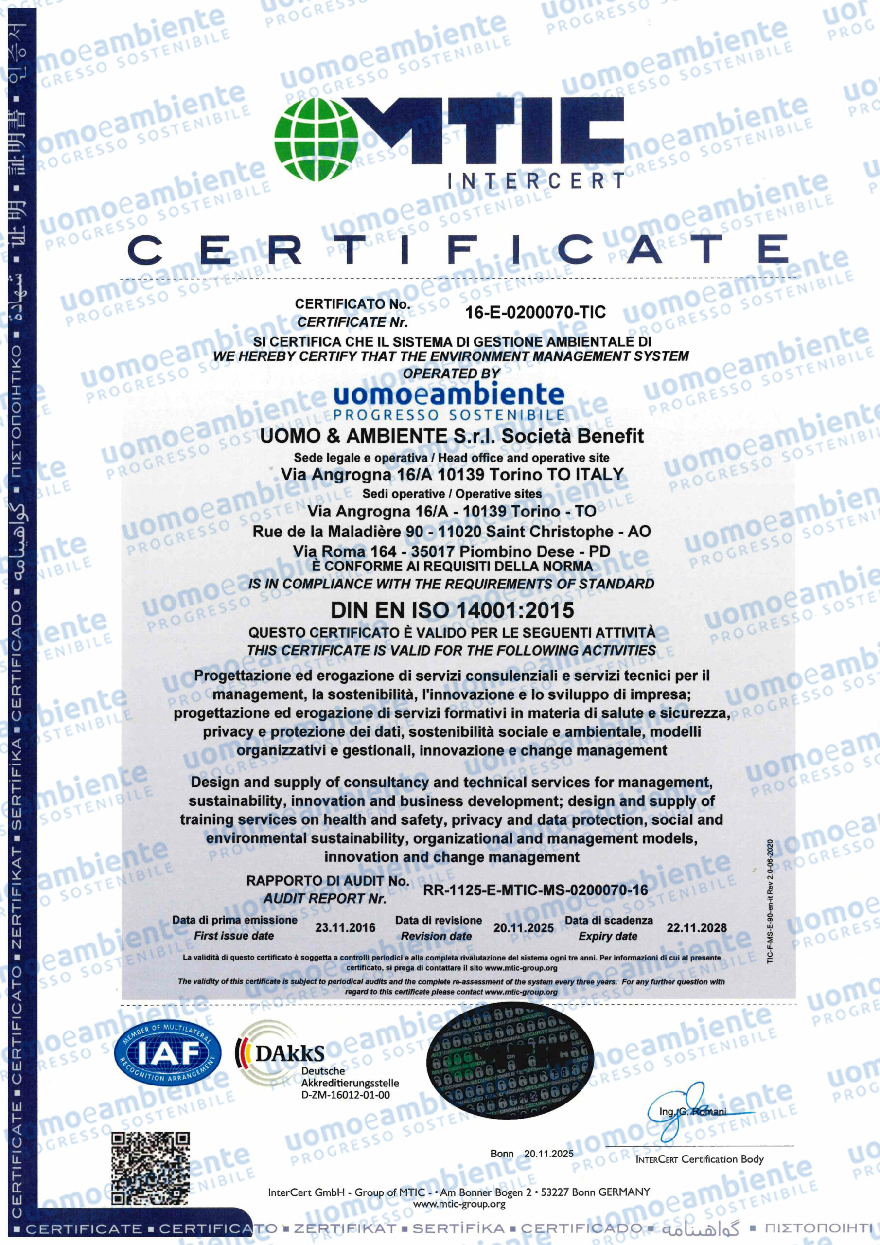 Per questo, anche successivamente al conseguimento della certificazione, la collaborazione con Uomo & Ambiente, sta proseguendo in modo soddisfacente e proficuo."