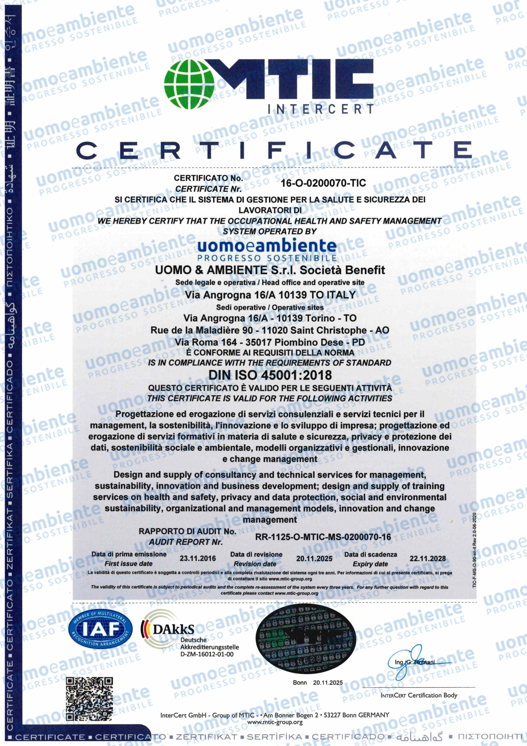 "Abbiamo avuto il piacere di essere affiancati da UOMOeAMBIENTE nel percorso verso diverse certificazioni, e possiamo dire con convinzione di esserci trovati molto bene.